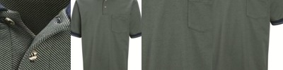 - Fashion collar with three button placket and embossed metal buttons with plastic rims