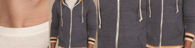 - Raw-edge seams around hood opening, pocket seams, cuffs, waistband and side seams
