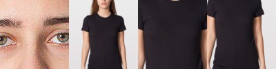 • Capped sleeves with a solid color rib neck trim