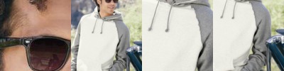 - Raw edge seams around hood opening, pocket seams, cuffs, waistband and side seams