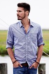 - Roll-up sleeves with two-button cuffs