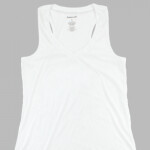 - Flat rib knit trim at neck and arm openings