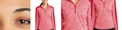 This lightweight pullover locks in color, wicks moisture, resists snags and has an amped up colorblock look. 4.1-ounce, 100% polyester yarn-dyed jersey with PosiCharge technology (Electric Heather) 4.7-ounce, 100% polyester jersey with PosiCharge technology (solid) Gently contoured silhouette Removable tag for comfort and relabeling Cadet collar Reverse coil zipper Colorblock on shoulders and sleeves Princess seams Set-in sleeves Open cuffs and hem Drop tail hem