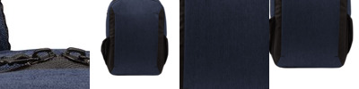 This streamlined pack has a modern, heathered fabric and keeps your laptop and other must-haves organized and secure. 600 denier heather polyester, 300 denier polyester canvas Roomy main compartment Large office compartment Side-entry, padded laptop compartment Comfortable fitted shoulder straps Large front side zippered pocket for easy decoration Luggage trolley strap on back Laptop sleeve dimensions: 17.5'h x 12.25'w; fits most 15' laptops Dimensions: 17.5'h x 12.25'w x 4'd; Approx. 858 cubic inches