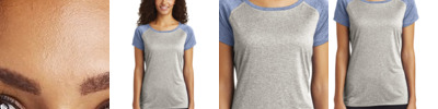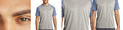 This moisture-wicking, snag-resistant tee combines two heather colors for a unique colorblock design. 3.8-ounce, 100% polyester jersey Removable tag for comfort and relabeling Neck taping Contrast raglan sleeves