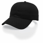 100% cotton twill; relaxed, contoured crown shape; cotton sweatband; pre-curved visor. Adjustable cloth hook and loop back strap: one size