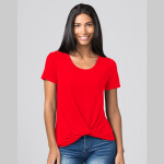 Our ladies T-shirt collection has taken on a new spin when it comes to style, and it happens to be a flattering twist design! Crafted from soft blends of polyester and rayon jersey, the Ladies Twisted Tee features casual short sleeves, a fun front twist design, and a relaxed high-low hem. The Ladies Twisted Tee is a comfortable option for casual chic style.