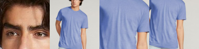 Retail fit Tear-away label Side seamed Shoulder taping Athletic Heather/Black Heather: 4.2-ounce, 90/10 Airlume combed and ring spun cotton/poly, 32 singles Heather CVC/Solid CVC Blend Colors: 52/48 Airlume combed and ring spun cotton/poly Prism: 99/1 Airlume combed and ring spun cotton/poly