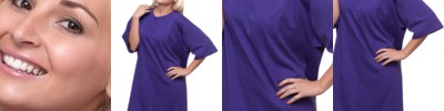 - Hemmed sleeve ends and scoop shirt tail bottom