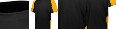 - Heather colorblock on upper chest, back and shoulders