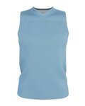 92% polyester/8% spandex wicking pinhole mesh * Wicks moisture * Ladies' fit * Tag-free label * V-neck collar * Contrast color inserts