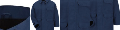 - Two-way, concealed, Nomex® tape, brass, break-away zipper, concealed snap at top of zipper at neck