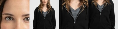 - Attached adjustable hood with chin guard and locking drawcord closure