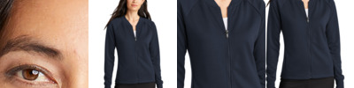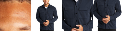 Made to be dressed up or down, this modern layer blends the laidback comfort of a sweatshirt and the sophistication of a tailored jacket. Matte-finished snaps on self-fabric cuffs allow for easy on and off wear. The open collar allows tees and shirts to stylishly peek through.
