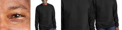 - Spandex reinforced ribbed crewneck collar