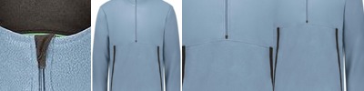 - Quarter-zip with storm flap and zipper garage