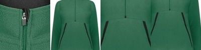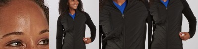 100% polyester heathered wicking knit top body, collar and sleeves * 100% polyester wicking knit solid bottom body * Wicks moisture * Ladies' fit * Tag-free label * Quarter zip pullover style * Set-in sleeves * Dropped tail bottom