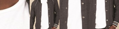 - Yarn dyed stripe rib on cuffs and bottom band