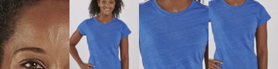 3.8 ounce, 50% polyester/25% cotton/25% rayon tri-blend knit * Ladies' fit * Fits loose to body * Tear away label * Scoop neck * Dropped shoulder sleeves for mobility and comfort * Contoured bottom