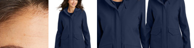 - Two-piece, insulated, stand-up collar with concealed snap closure