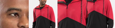 - Three-piece hood with drawcord