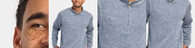 * Ventura Suede Knit 6.34-ounce * Solids, 89% recycled polyester/11% spandex * Heathers, 45% recycled polyester/44% polyester/11% spandex * Wicks moisture * Tag-free label * Quarter zip pullover style * Set-in sleeves with rolled forward shoulder seam * Side vents