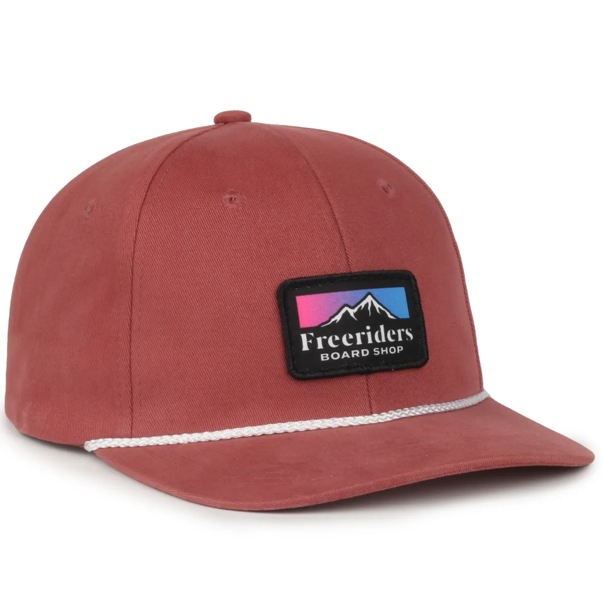 High Profile,Mesh Back,Cotton Twill Front Panels and Visor,Mesh Back Panels,Rounded Flat Visor,Structured,Plastic Snap Closure,5 Panel
