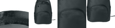 - Spacious main compartment opening with interior zippered mesh pockets and divider