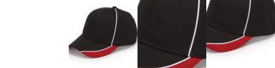 - Vertical two-stripe contrast detail down center of mesh back panels