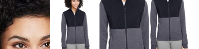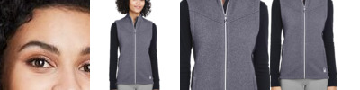 - Reverse coil center front zipper with dyed-to-match rubberized branded zipper pull