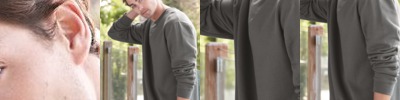 - Non-topstitched, narrow width, rib collar
