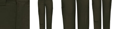 - Two hip pockets, scoop front pockets, rule pocket on right leg, and utility pocket on left leg